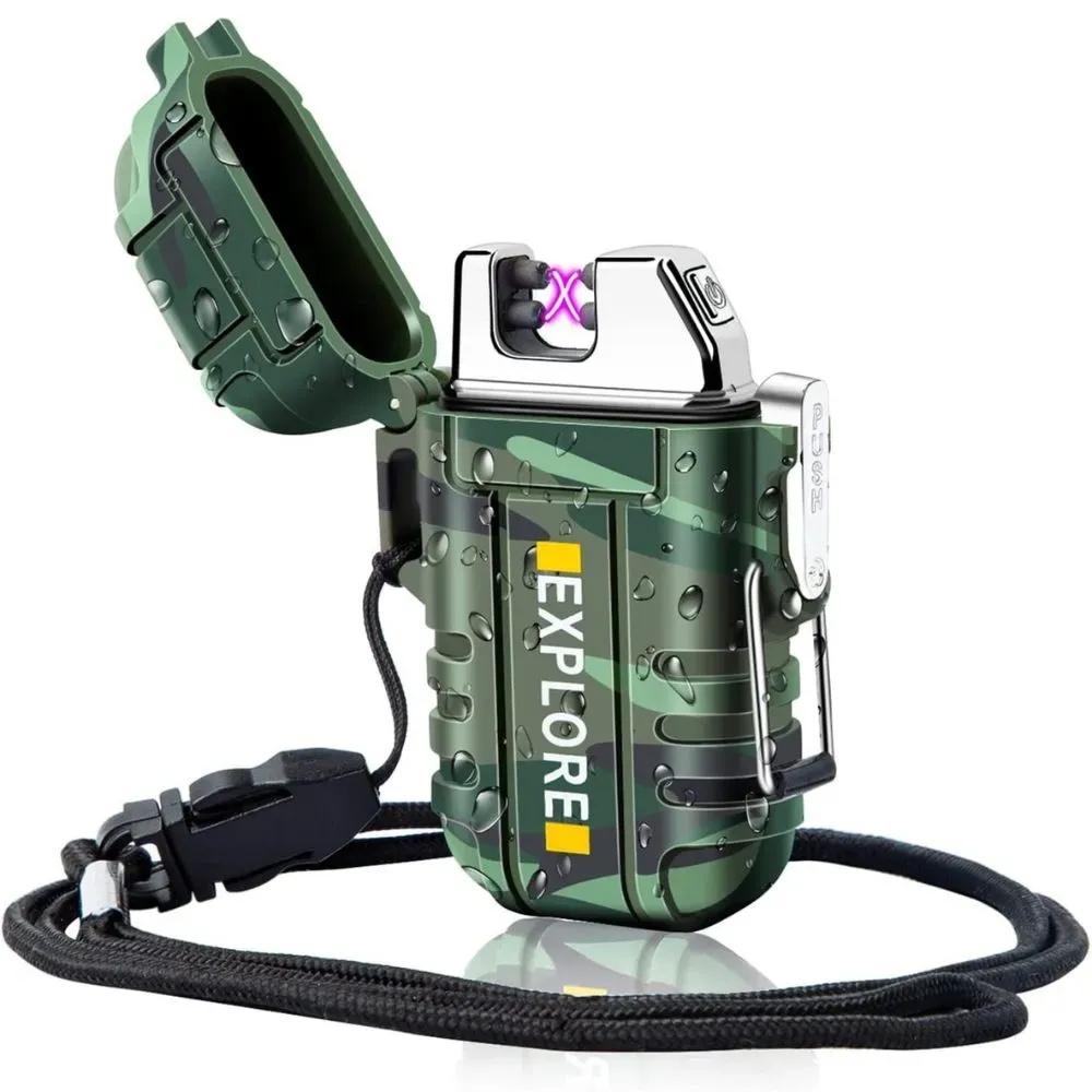 This LcFun Waterproof Lighter is the perfect choice for anyone looking to brave the elements outdoors. This dual arc flameless, windproof lighter comes with an IP56 waterproof system to keep your fire starter safe from rain and other elements.