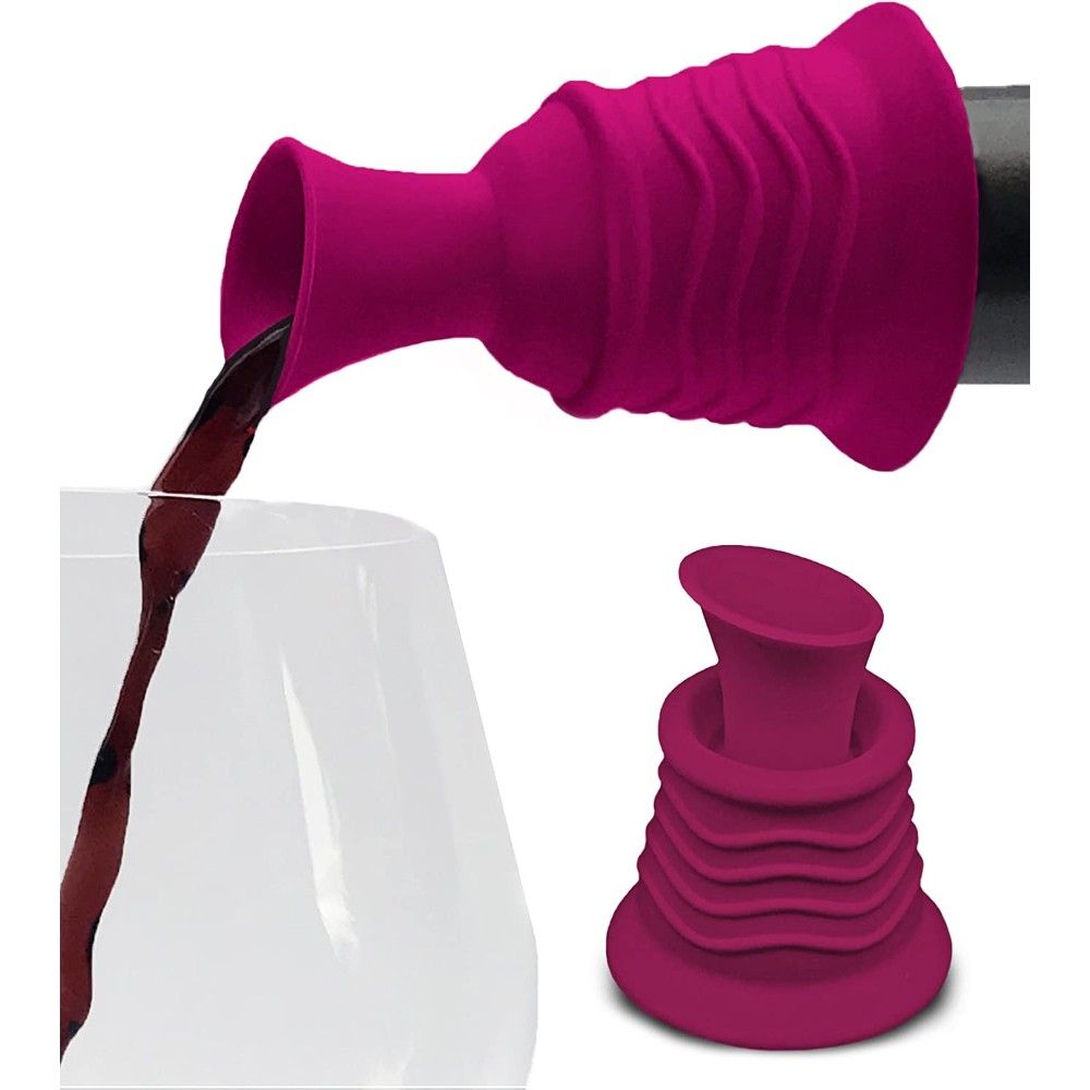 Pouring and preserving wine just got easier with this silicone wine stopper and pourer. This dual-use gadget slips over an open bottle of wine to pour more easily into your wine glass and seal it to create a drip-proof seal.
