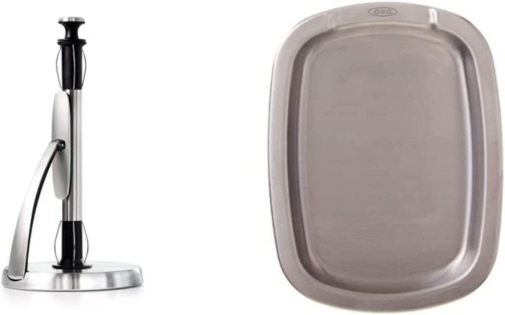 But that's not all – the OXO Good Grips SimplyTear Paper Towel Holder also comes with a spoon rest! The heat-resistant silicone base keeps your utensils cool to the touch, and the non-slip construction prevents them from sliding around while you're cooking. Plus, the silicone feet protect your countertops from scratches. So why not kill two birds with one stone? Get the OXO Good Grips SimplyTear Paper Towel Holder and make your life a little easier (and your kitchen a little neater)!