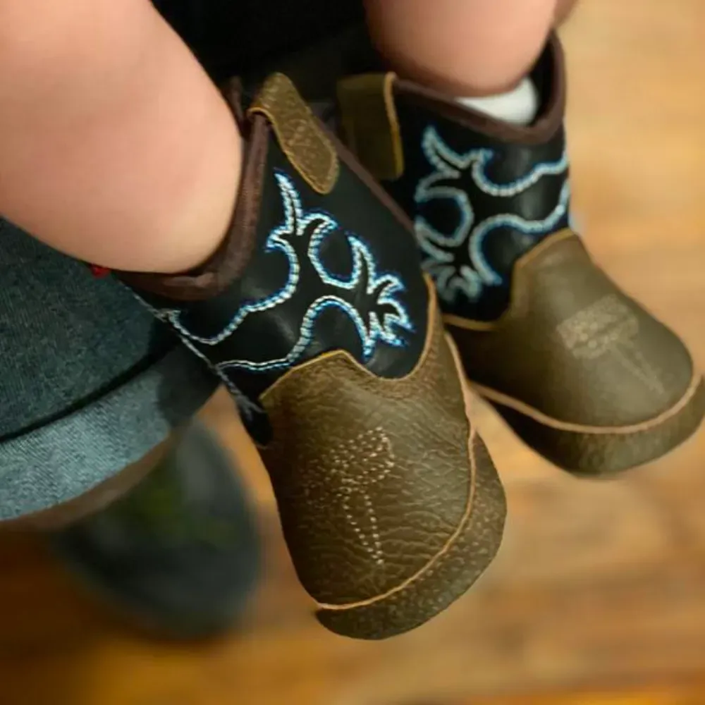 2. M&F Western Kids Unisex-Child Trace Baby Boy's Infant/Toddler Bucker Boot