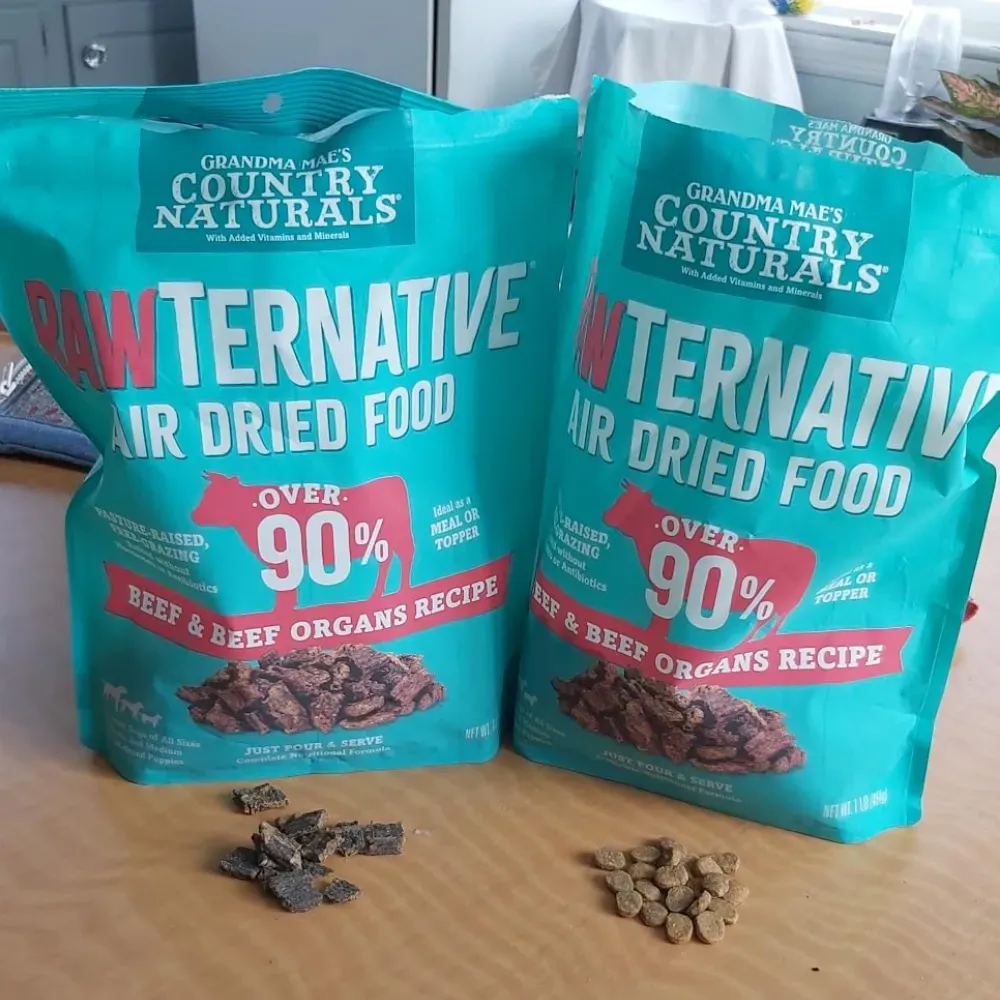 Grandma Mae's Country Naturals RawTernative offers a lamb and lamb organs recipe that is made from grass-fed lamb raised ethically in New Zealand. This air-dried dog food is a 100% complete and balanced diet.