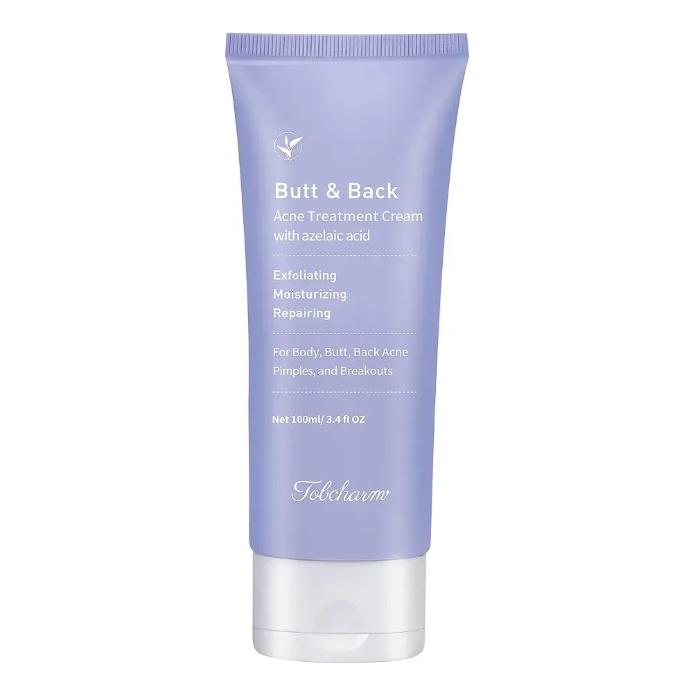 Tobcharm's Body Acne Treatment with Azelaic Acid is the perfect solution for anyone suffering from butt, back, and body acne. This advanced acne-clearing treatment helps diminish existing breakouts and prevents pimples, whiteheads, and cystic acne.