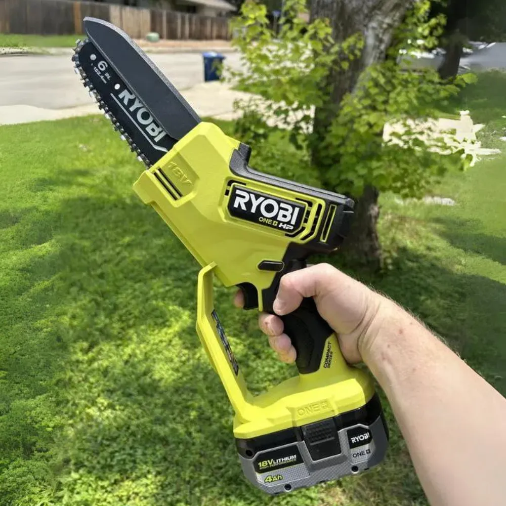 This mini chainsaw cordless stands out with its tool-less chain tensioning and oil-free design, which simplifies maintenance. Its compact design and lightweight nature make it perfect for maneuvering in tight spaces, and the fact that it's part of the RYOBI ONE+ system means you can use any 18V ONE+ battery with it.