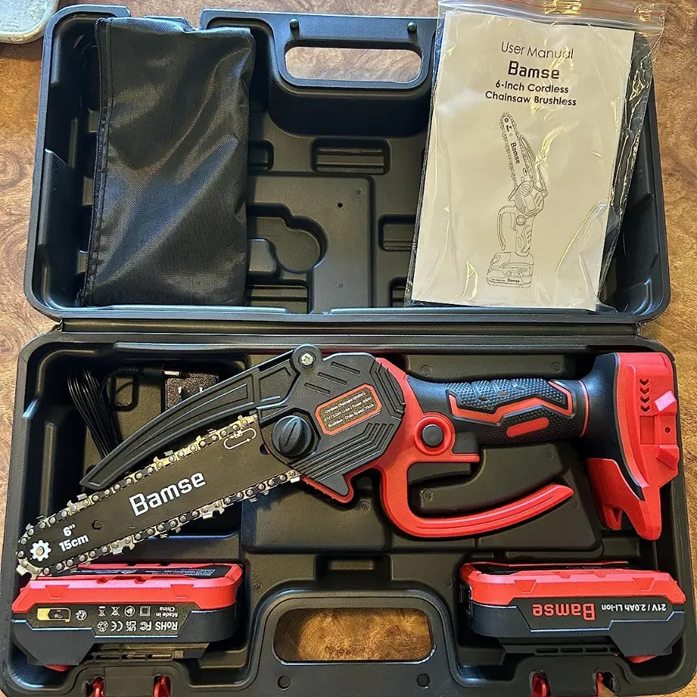 The Bamse Electric Chainsaw is a powerhouse in a compact package. Its brushless motor and dual 2.0Ah batteries deliver a chain speed of 32.8ft/s, making it a formidable tool for tree trimming and wood cutting.