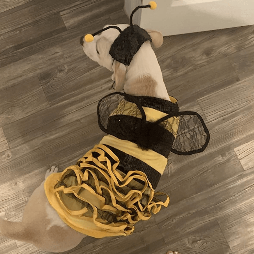 This dog bee costume is made of soft, durable, high-quality fabrics that keep your pup comfortable and avoid the sun.