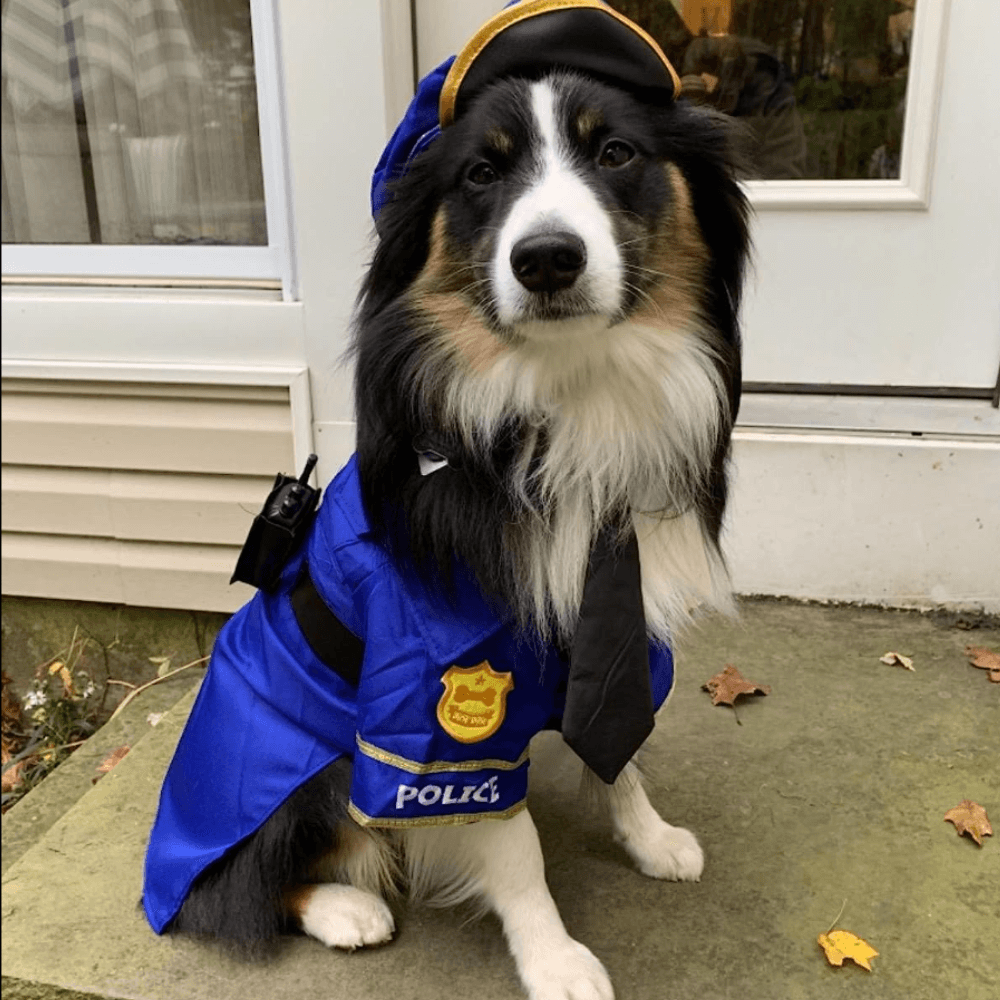 This fun and adorable costume includes a blue jacket with badges, a police hat, and a backpack, so your pup will be ready for any mission.