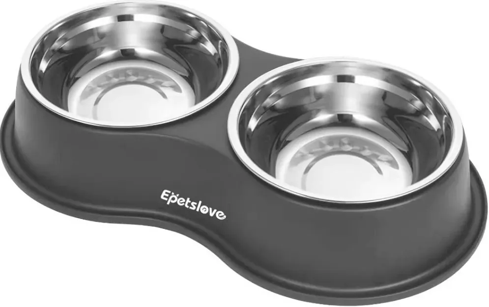 Dog Bowls Double Dog Water and Food Bowls Stainless Steel Bowls with Non-Slip Resin Station