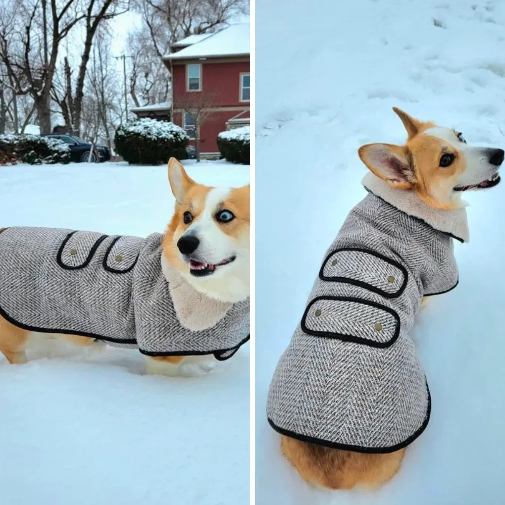 The Frisco Tweed Coat blends luxury and practicality, making it a standout option for dogs and cats alike. Its soft faux fur lining and stylish tweed exterior make it perfect for chilly urban outings.