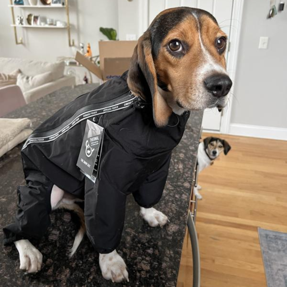 The Canada Pooch Dog Snowsuit combines functionality and fashion, offering your pup full-body protection while maintaining a stylish look. Its durable design is perfect for both snowy walks and frigid weather. Its design ensures that every part of your dog's body is protected from the cold, providing comprehensive warmth and comfort.