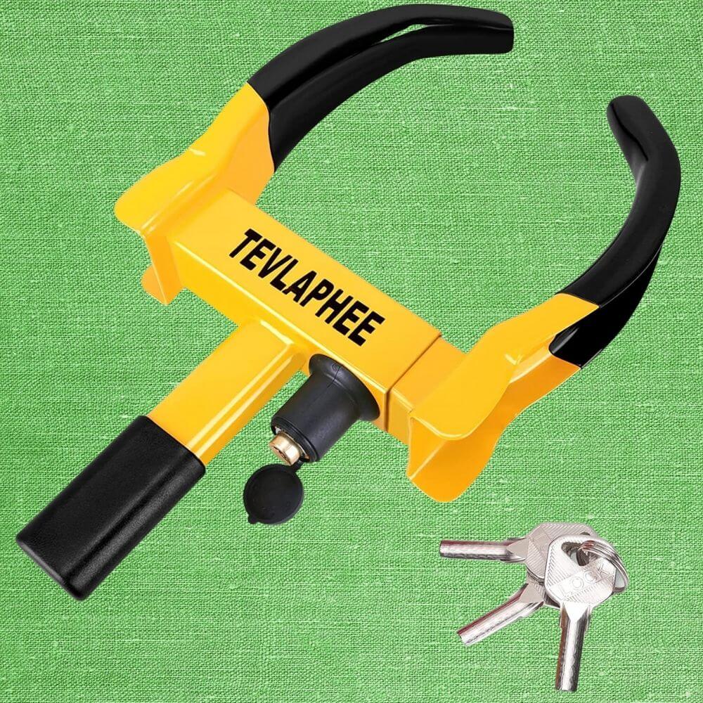 3. Tevlaphee Universal Wheel Lock Heavy Duty Security 3 Keys (Black-Yellow)