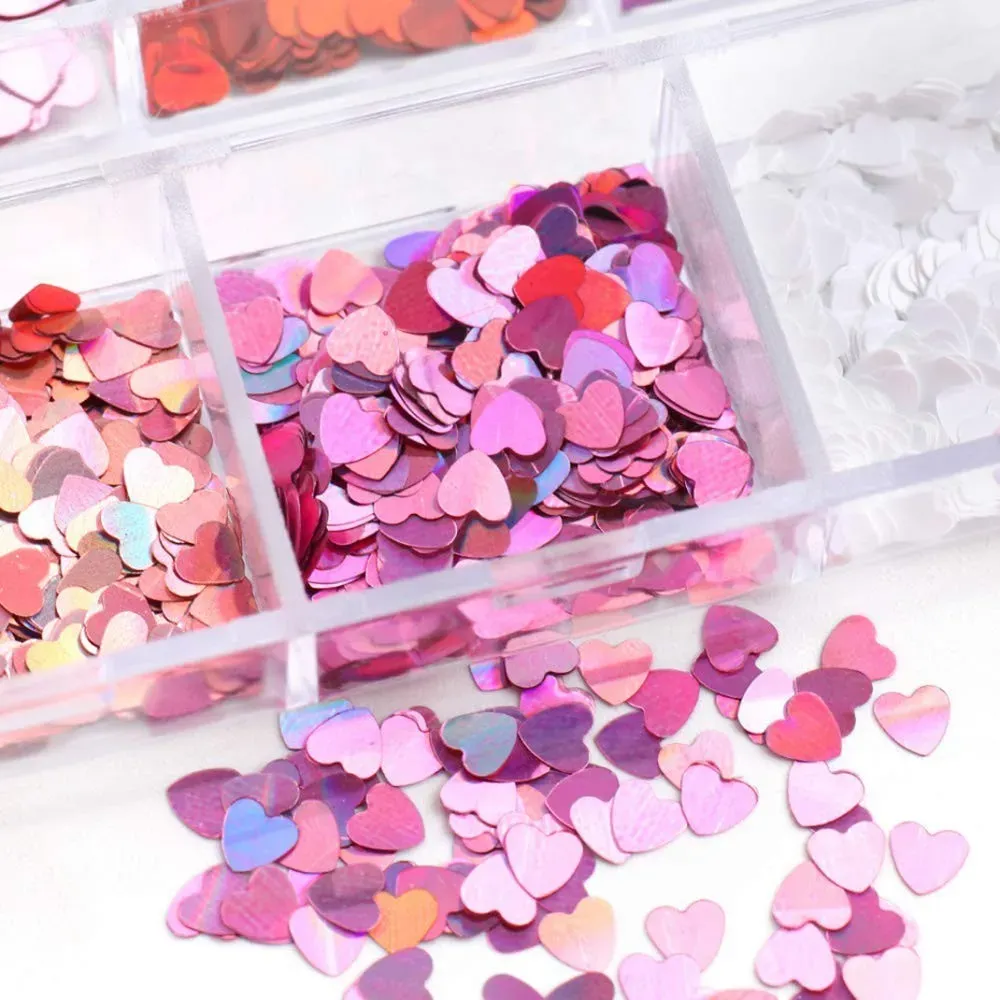 The 12 glittery heart-shaped sequins come in various colors, giving us the perfect look to match any outfit.