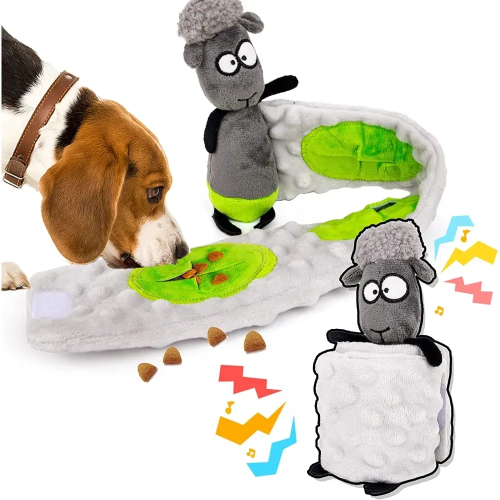 Dogs will love the irresistible Crinkle Paper Squeaky, Snuffle Treat-Dispensing Interactive Toy, with its playful sheep and green pockets that will draw their attention.