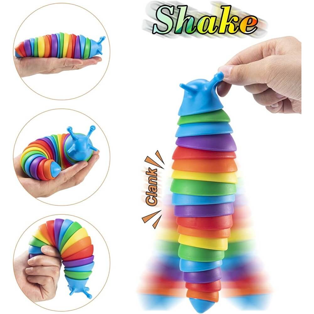 The Fidget Slug is made of BPA-free material, so it's safe for everyone to enjoy. It has an ingenious spherical design that allows it to be twisted and turned in any direction. The slug toy can rotate 360°, has an amazing range of motion, and makes a pleasant sound when it is shaken.