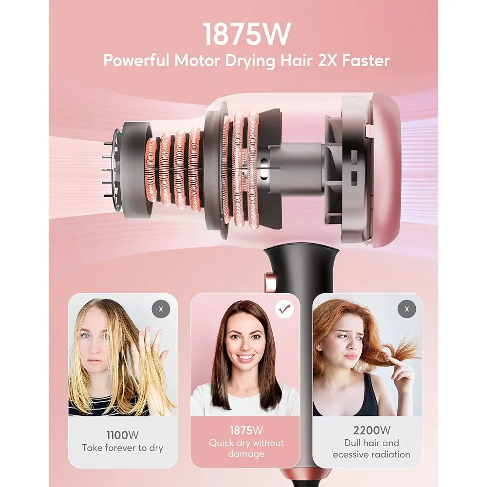 It's also equipped with a high-speed brushless motor that dries your hair 2x faster than traditional hair dryers and has 200 million negative ions that make your hair silky smooth without any frizz.