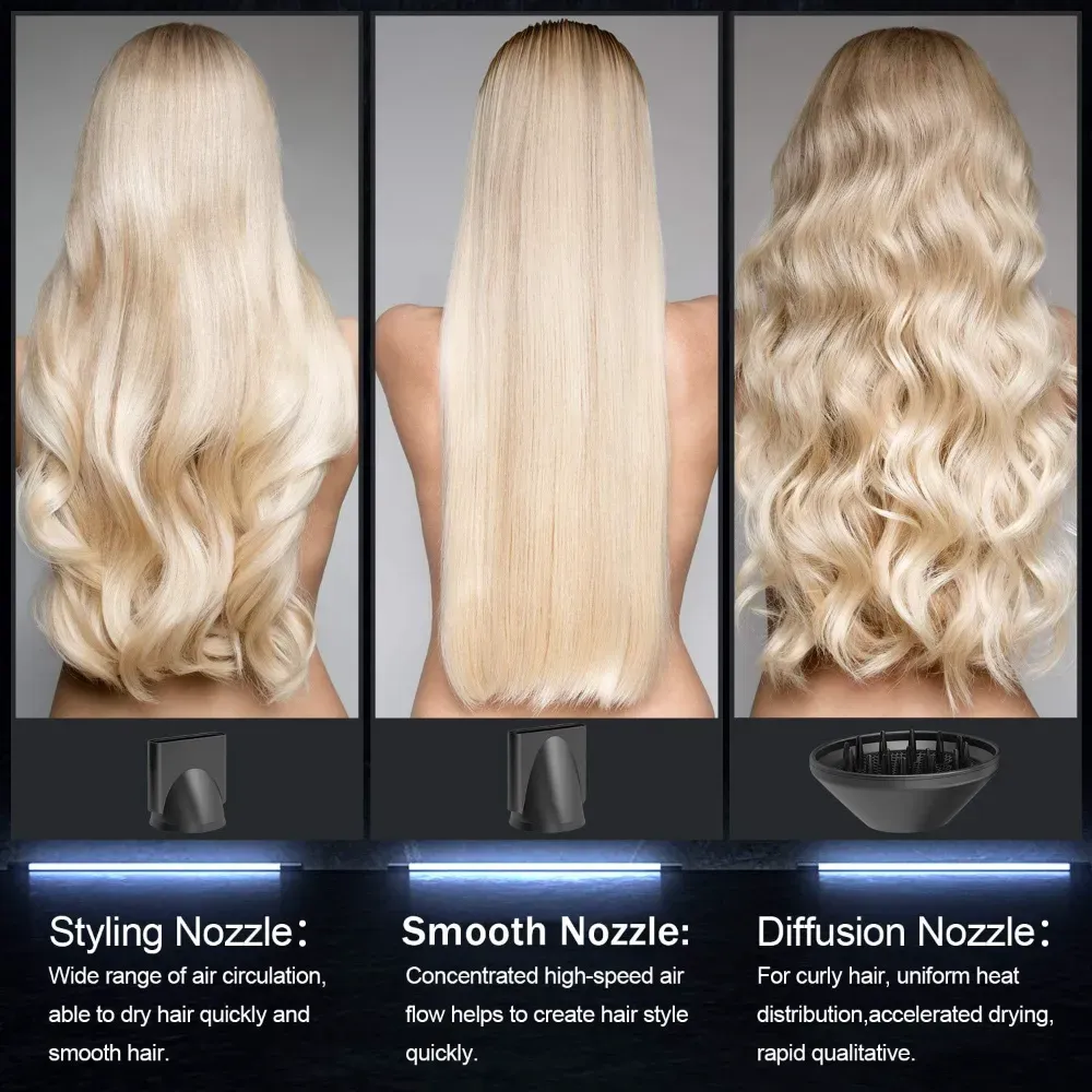 What's more, this hair dryer comes with 3 nozzles and 3 different wind speeds, so you can customize your drying experience.