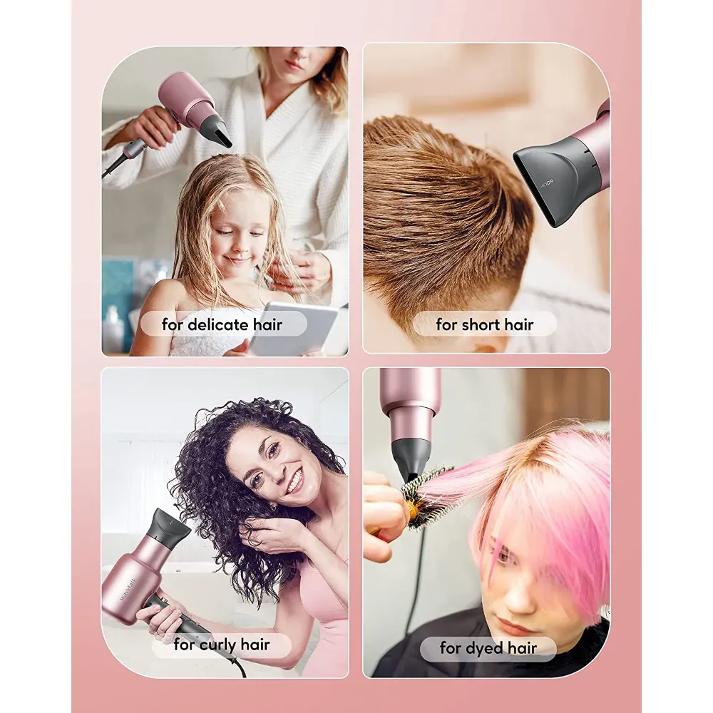 With a 1800W AC motor, this hair dryer can reach speeds of up to 20,000 rpm and airflow of up to 3.2m³/min. That means faster drying times and less time spent waiting around for your hair to dry. And with a noise level of only 80 dB, you can rest assured that this hair dryer won't disrupt your peace and quiet.