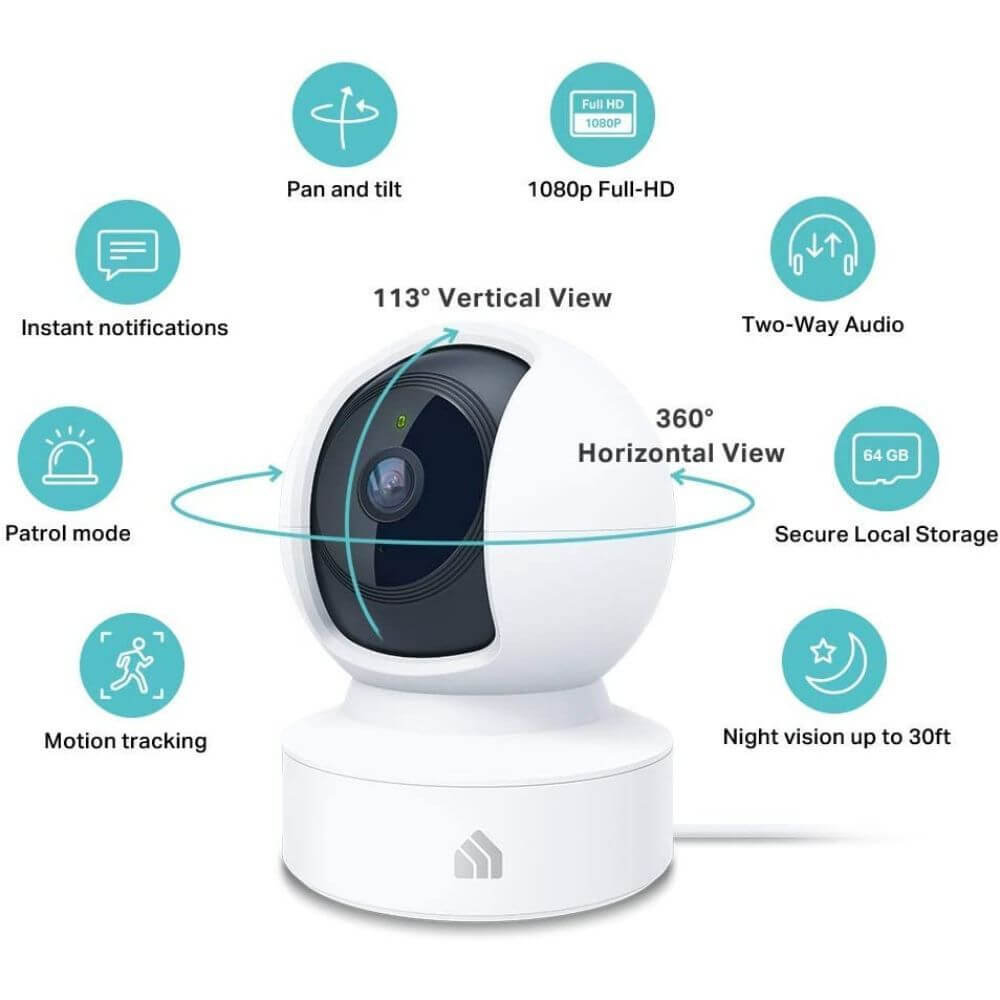The Kasa Indoor Smart Security Camera is a powerful and versatile home security solution. With pan/tilt functionality and Full HD 1080p video, you can keep an eye on your home from anywhere in the world. And with motion and sound detection, you'll be alerted to any activity, even at night.