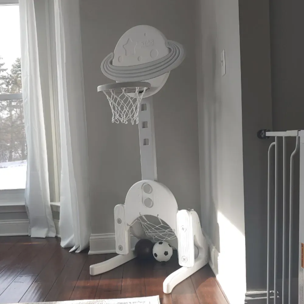 Made with high-density polyethylene (HDPE), this activity center is built to last. The sturdy construction ensures it can withstand vigorous play and the elements, making it suitable for indoor and outdoor use. Whether it's in the backyard, living room, or playroom, this basketball hoop will provide endless entertainment for your little ones.