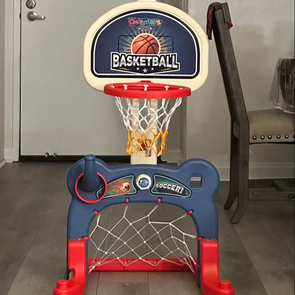 Bring the joy of sports into your child's life with the Dazmers 3-in-1 Kids Sports Center. Its unique features, easy setup, and endless possibilities for play make it a top choice for parents and caregivers alike. Watch as your child's skills and confidence soar as they slam dunk, score goals, and toss rings with excitement and delight. Get ready for hours of active fun and unforgettable memories with this fantastic playset.